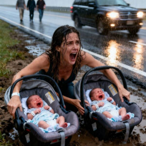 —Sal del coche ahora mismo —ordenó mi madre mientras la lluvia azotaba la carretera y mis gemelos de tres días lloraban en sus…
