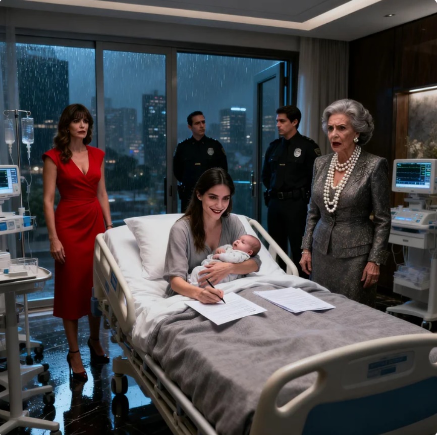 La suite privada del hospital parecía un campo de batalla silencioso. La luz de las lámparas se reflejaba en el piso brillante, pero no podía calentar el aire cargado de tensión. Valeria Montoya permanecía recostada en la cama, con el pequeño Mateo entre sus brazos. Sus ojos, aunque cansados y aún humedecidos por el dolor del parto, brillaban con una calma peligrosa, esa calma que anuncia que algo muy grande está por suceder.