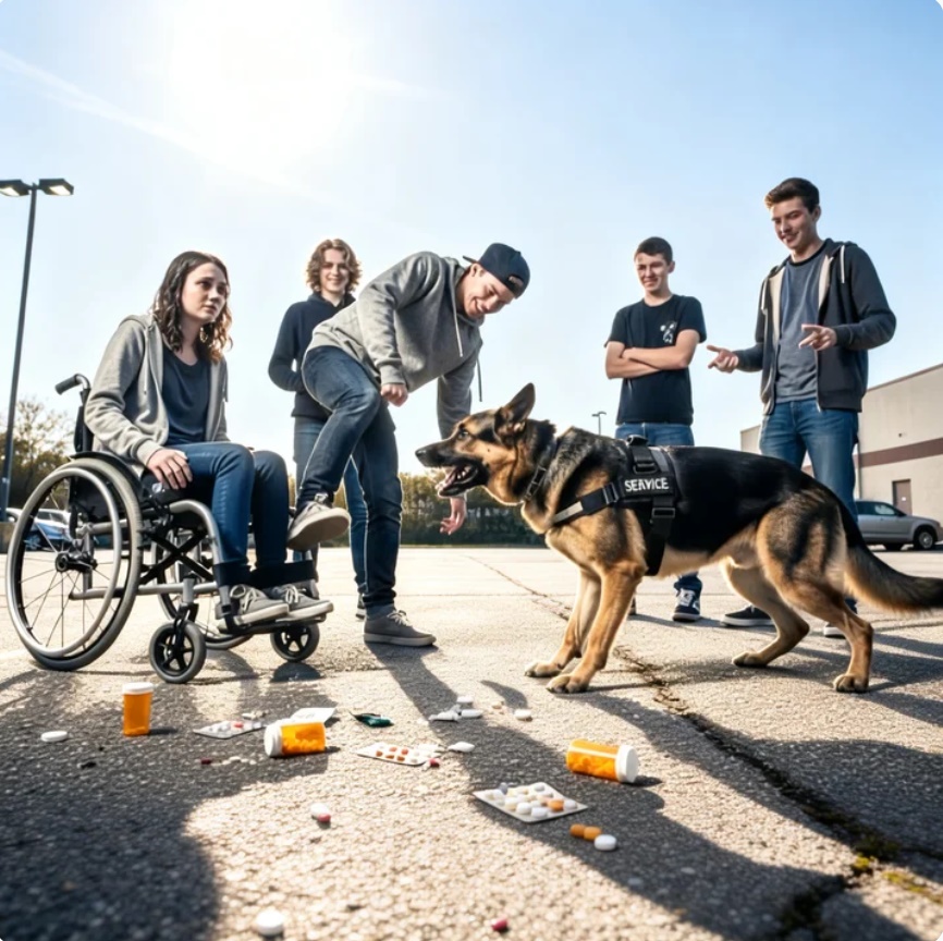 Su pastor alemán se tambaleó hacia atrás, pero no ladró, ni mordió, ni huyó. Simplemente se quedó allí, temblando pero absolutamente leal, porque detrás estaba Emily, la chica en silla de ruedas, incapaz de defenderse, incapaz de defenderla.