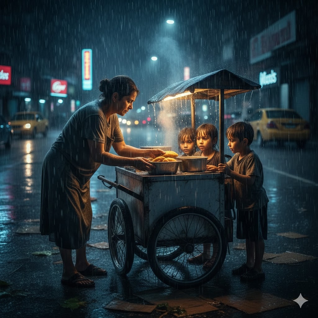 que la rabia y el dolor se mezclaban en su pecho, formando un nudo imposible de deshacer. Miró su carrito de comida,