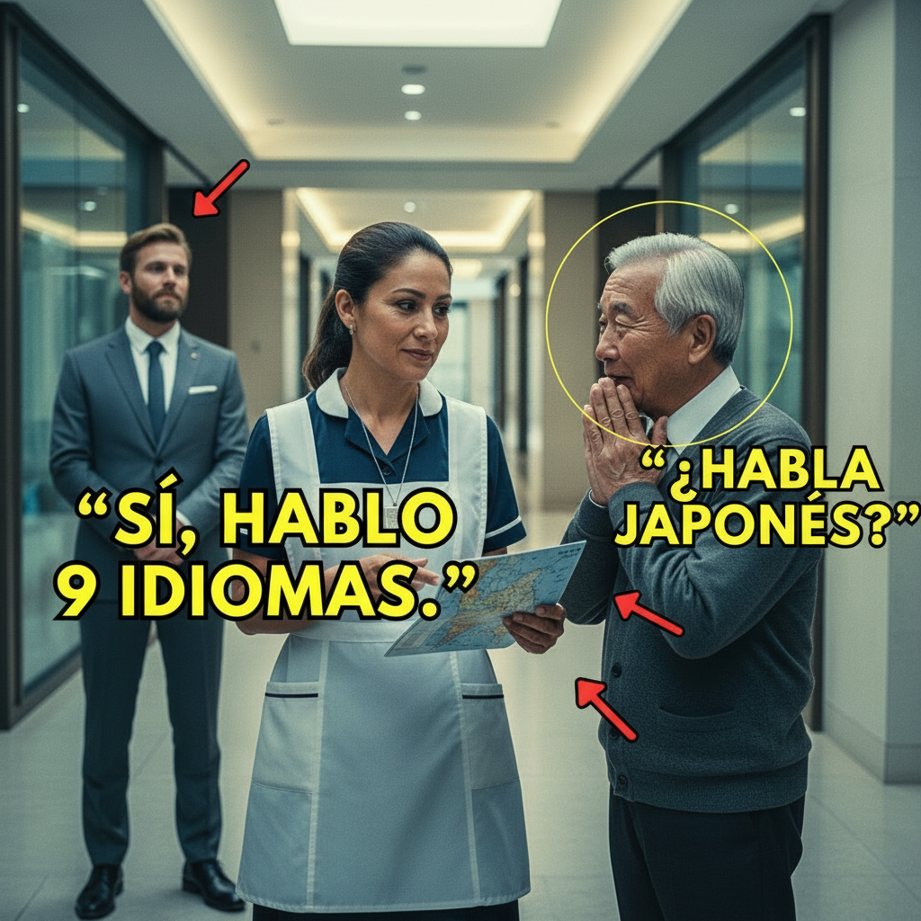Cuando le pidió a Camila que entrara a la sala de reuniones, ella, siempre discreta, aceptó la invitación con humildad. Al principio, todos en la sala miraron con escepticismo a la mujer vestida con el uniforme de limpieza. Sin embargo, cuando Camila comenzó a traducir con precisión y claridad el documento técnico en japonés, la sala quedó en silencio. La sorpresa fue total. No solo hablaba japonés, sino que también entendía las complejidades de los términos técnicos que se discutían. Con cada palabra que pronunciaba, el respeto hacia ella crecía.