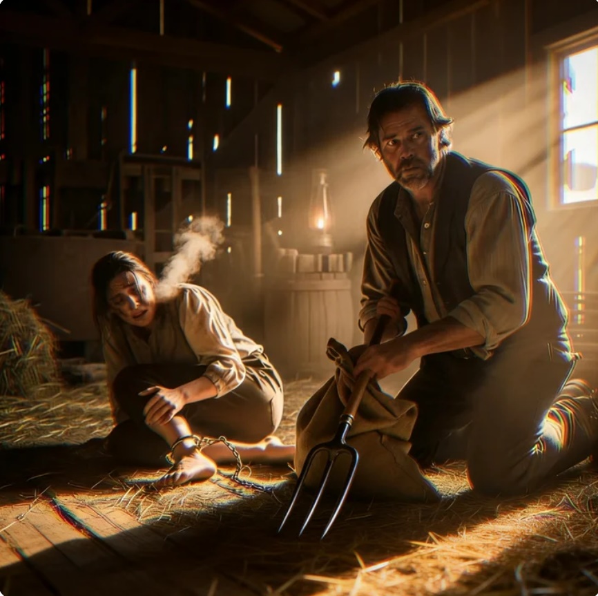 rota pero inquebrantable. En el opresivo silencio del granero, solo roto por el