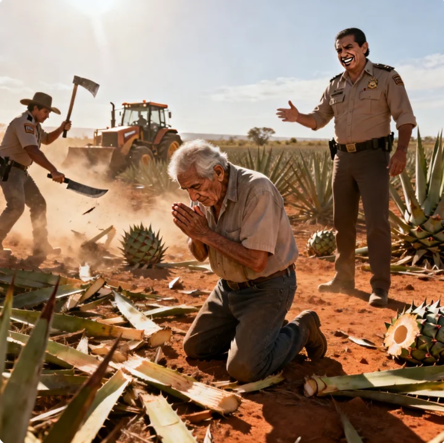anciano cayó de rodillas entre el agave cortado, suplicando que se detuvieran.