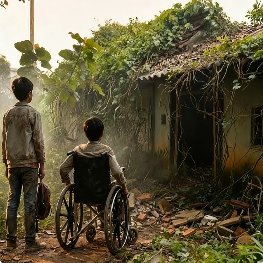 Dos niños huérfanos entraron a una casa cubierta de maleza para huir de la lluvia y hallaron algo…