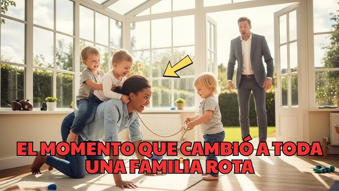 Sus tres hijos estaban montados sobre su espalda. Sus rostros diminutos estaban iluminados por una alegría pura y descontrolada que él creía perdida para siempre. Mick, el más pequeño, sostenía una cuerda alrededor de su cuello como si fueran riendas. Jane relinchaba como un caballo, sacudiendo la cabeza y trotando sobre la alfombra, riendo con ellos como si la hipoteca, las juntas directivas y el mundo exterior hubieran dejado de existir.
