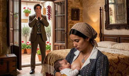 Fue entonces cuando la sombra de 1 hombre alto la cubrió. Era Alejandro, de 38 años, el imponente patrón de la Hacienda Los Agaves. Llevaba 6 meses viudo tras perder a su esposa en el parto de su última hija. Detrás de él, con los rostros manchados de tierra y miradas asustadas, se escondían sus 4 hijos.