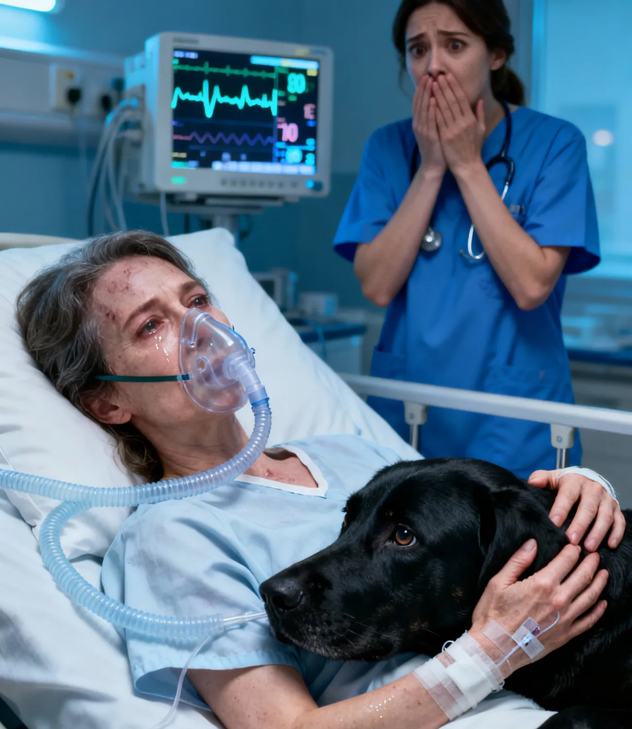 En cuanto Blade entró en la habitación, su postura cambió. Se pegó a la cama de Hannah, respirando con normalidad y con la mirada alerta. Su ritmo cardíaco se estabilizó por primera vez desde su ingreso. Las máquinas suavizaron sus pitidos frenéticos. Los médicos tomaron notas, confundidos pero aliviados.