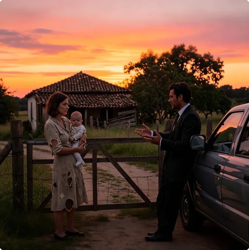 Ao reduzir a velocidade perto de uma porteira antiga, algo chamou sua atenção. A cena parecia deslocada do tempo: uma mulher magra, vestindo roupas gastas e rasgadas, segurava um bebê pequeno contra o peito. Estava ali havia horas. Isabel observava a estrada vazia como quem espera por algo que nem sabe nomear. Seu rosto cansado carregava marcas de noites sem dormir e de lágrimas já secas.