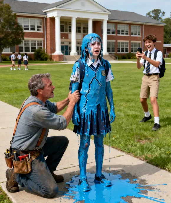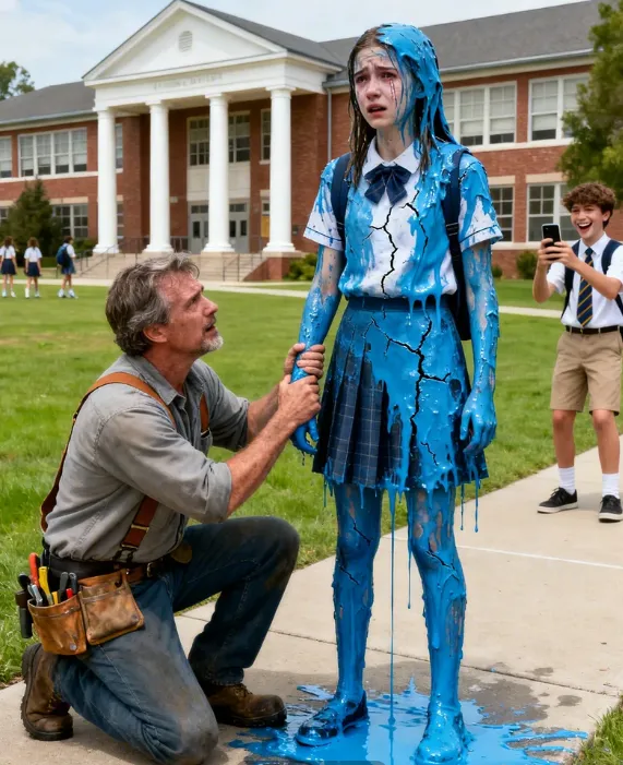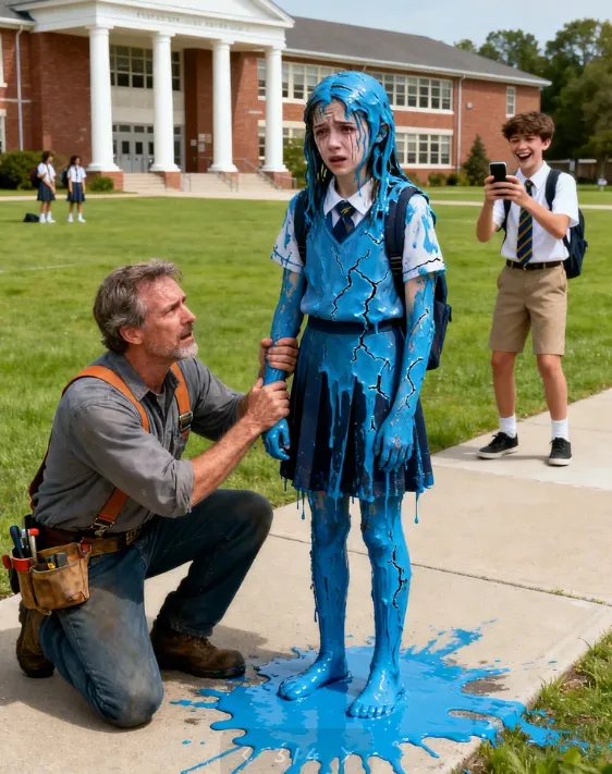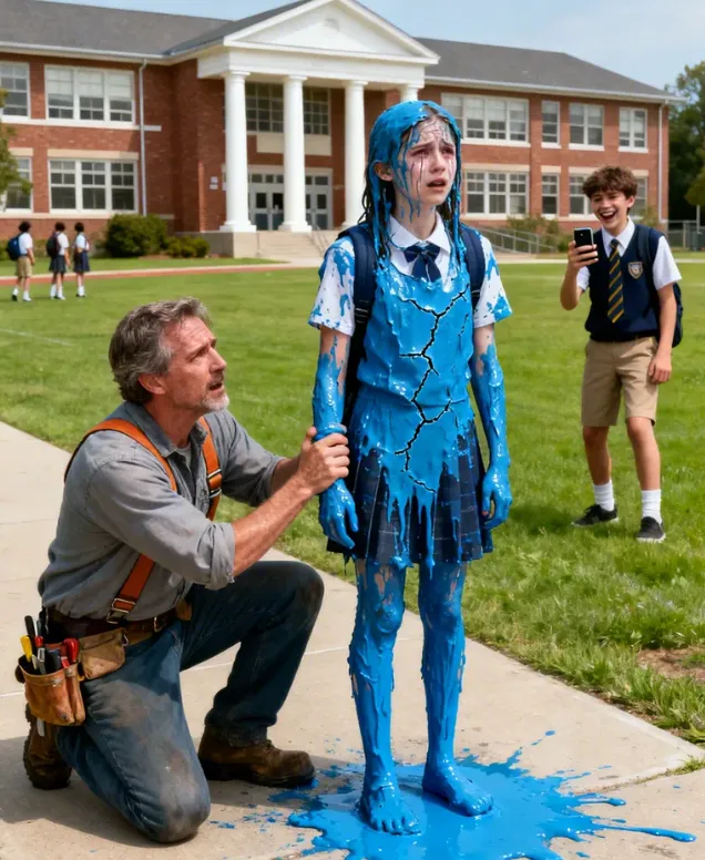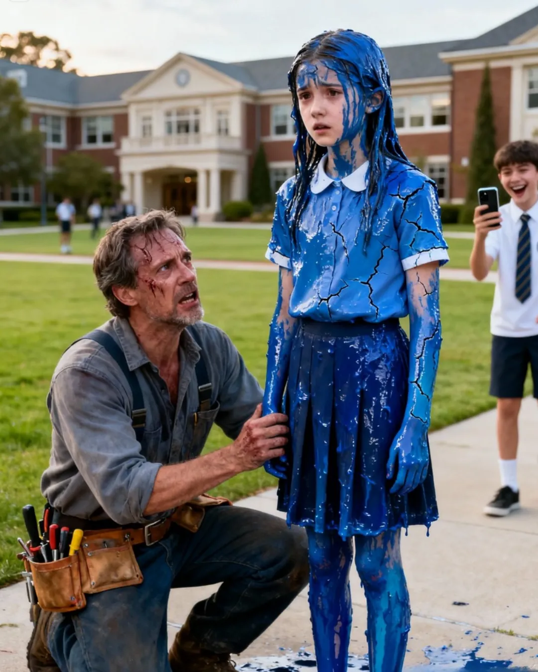 La pintura azul cobalto cubría su cabello, su ropa, su piel, agrietándose al secarse como una máscara cruel. No gritó.