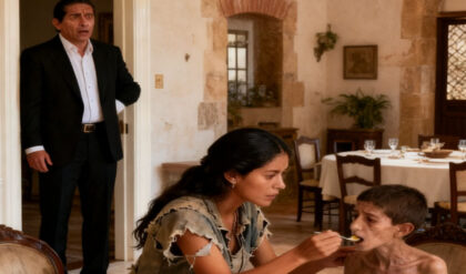 Rosa le llevó un vestido negro con delantal blanco. Cuando Valeria terminó de cambiarse, ya no parecía la empresaria elegante que salía en revistas locales junto a su esposo. Parecía una empleada más. Solo sus ojos la delataban: rojos, duros, despiertos.