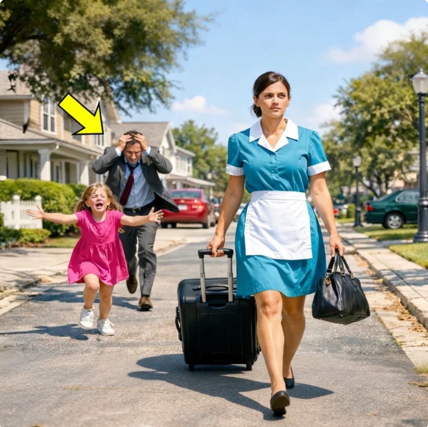 Unos metros más adelante, Olivia caminaba recta, firme. El uniforme azul impecable. El delantal blanco planchado con cuidado. En una mano, su bolso negro. En la otra, una maleta pequeña que rodaba con un sonido metálico y definitivo.