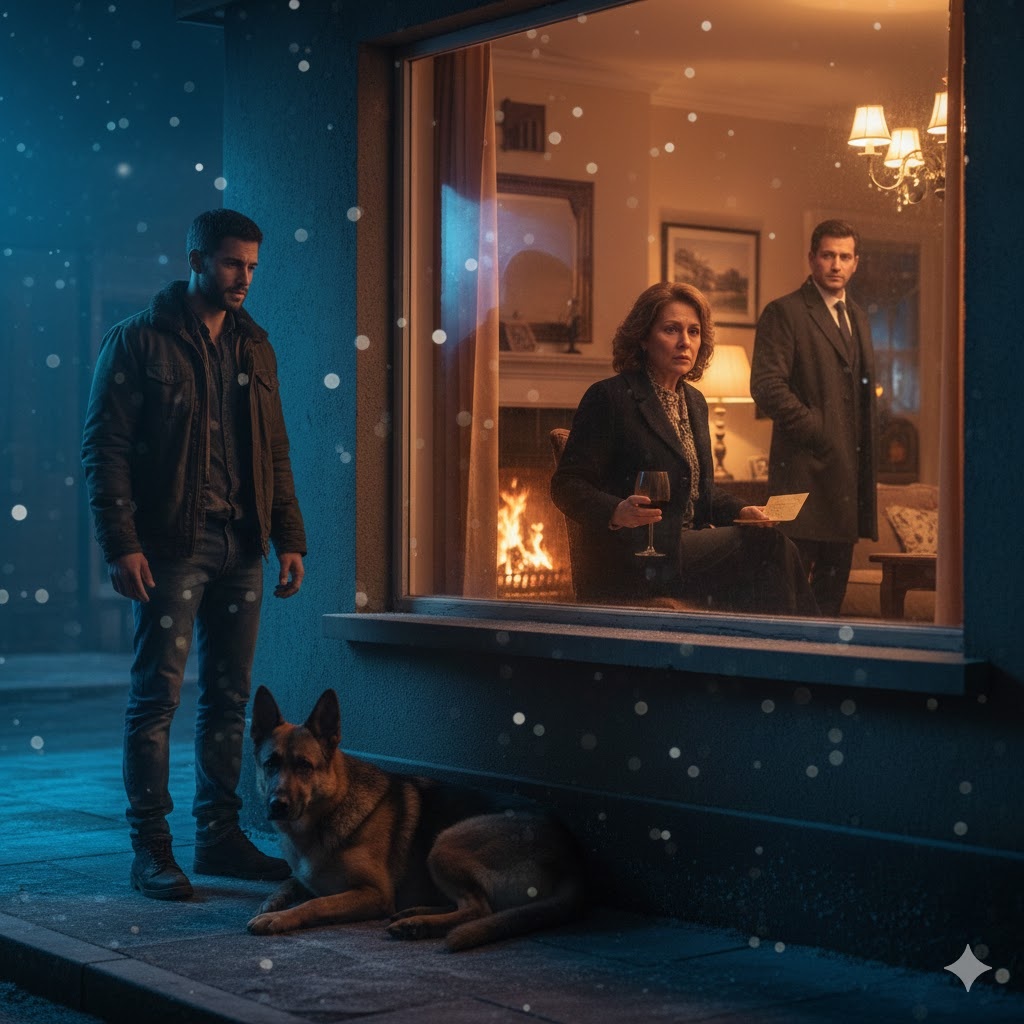LA NOCHE EN QUE VI A REX FUERA DEL CRISTAL Me llamo Carlos. Y la noche en que vi a Rex temblando fuera, pegado al cristal, mientras dentro ardía la chimenea y el vino brillaba en las copas, fue la noche en que entendí que hay puertas que se cierran para siempre — no por odio, sino por dignidad.