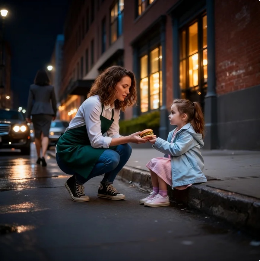 La calle estaba llena: oficinistas saliendo del trabajo, parejas rumbo a cenar, turistas tomando fotos. Pero nadie parecía notar a la niña.