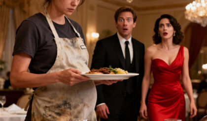 Aquella noche, la mansión brillaba más que nunca. Música de piano, candelabros, trajes de gala, vestidos largos. Camila era el centro de atención con su vestido rojo y sus diamantes, hablando con su madre de “tener la casa bajo control” y burlándose de la “niñera ladrona”. No sabía que la verdadera protagonista aún no había entrado.