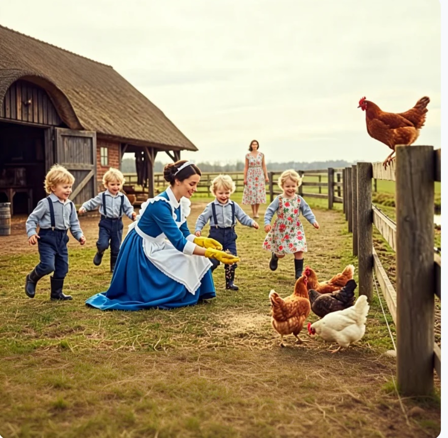 Sofía corría tras una gallina con los brazos extendidos, riendo a carcajadas.