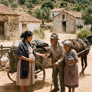 Fue en su día 12 en el pueblo cuando la vio por primera vez. Alejandro intentaba cargar dos pesados costales de maíz cerca del pozo de la plaza. El cansancio lo venció y parte del grano cayó al suelo. Antes de que pudiera soltar un insulto de frustración, una joven se detuvo a su lado. Se llamaba Carmen Flores, tenía 22 años, y su cuerpo reflejaba la dureza de una vida sin privilegios. Sus ojos color miel oscura transmitían una inteligencia serena, forjada por el dolor de la orfandad.