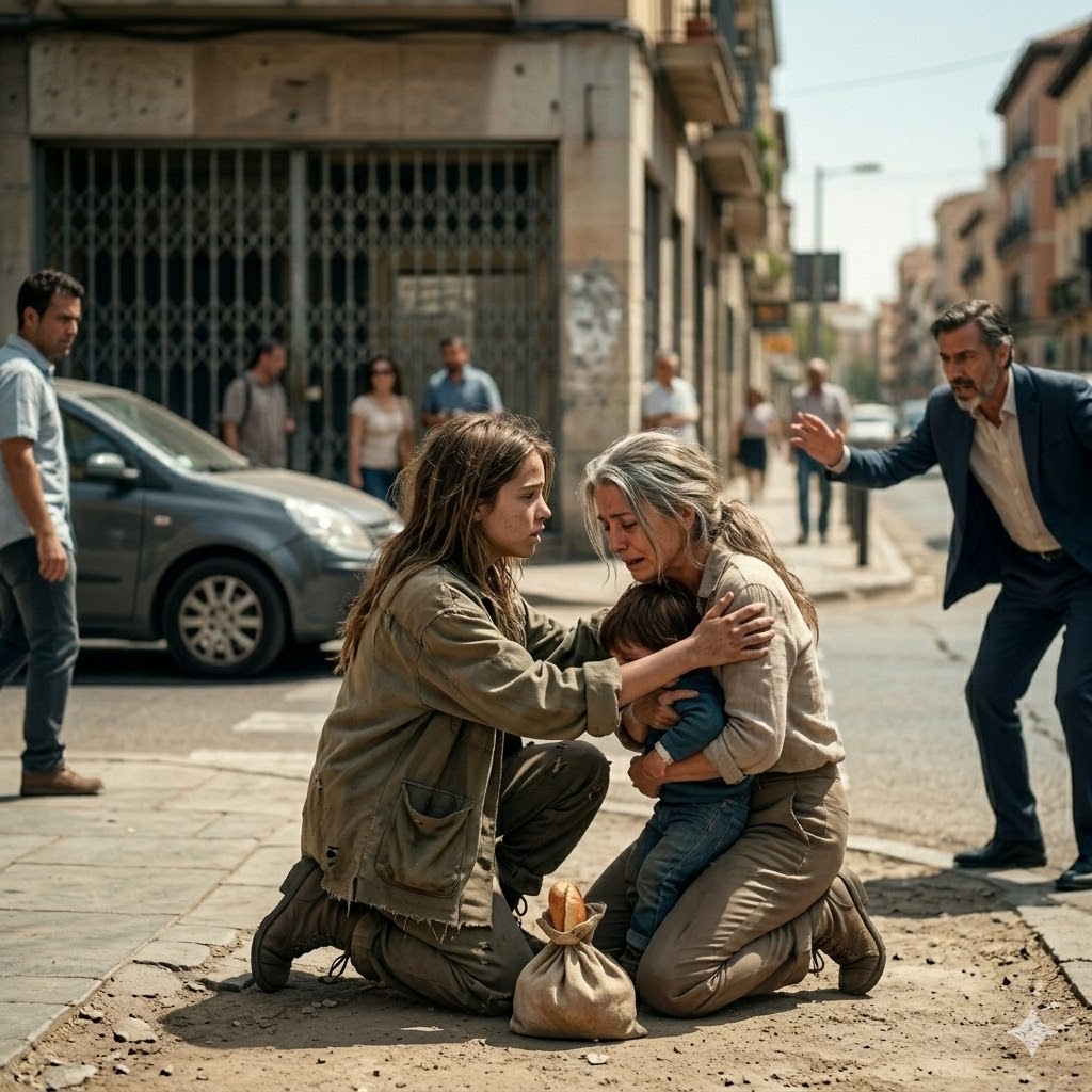 una bolsa de pan duro en sus manos. El único alimento que podría llevar a casa ese día. A pesar de su juventud, apenas
