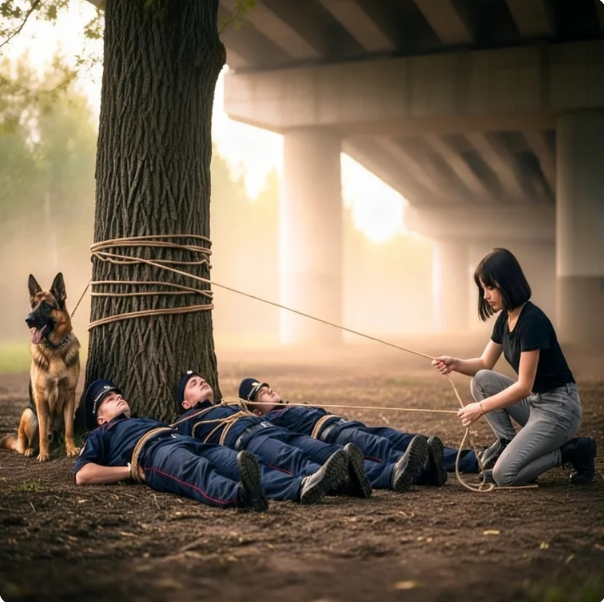 Una niña y su pastor alemán encuentran a tres policías atados a un árbol. Las