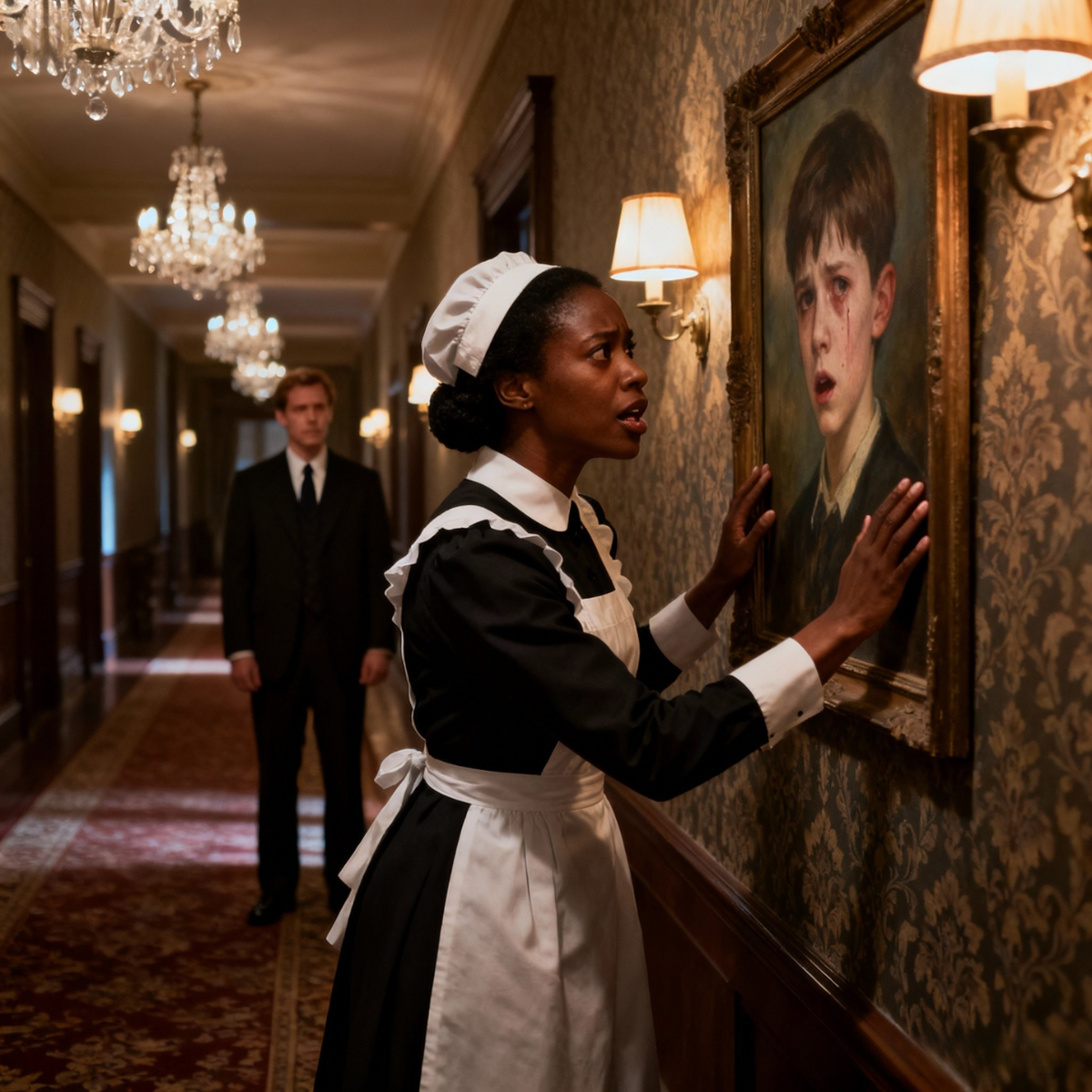 One afternoon, a new housemaid named Amara, a gentle Black woman in her early fifties, paused in the hallway near a portrait. It was a painting of Leo as a child—wide eyes, soft expression, holding a toy airplane. Ethan rarely looked at it anymore, but he kept it there because removing it felt like abandoning hope completely.