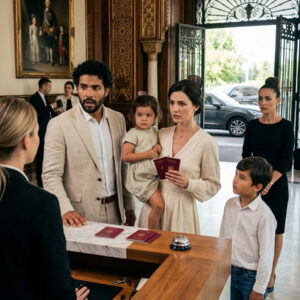 Sin perder un segundo más, Mateo empujó brutalmente la puerta de la cocina y caminó hacia la sala principal, llevando a Lucía de la mano y cargando a Leo en su otro brazo. Al entrar, la escena era dantesca: decenas de personas vestidas de gala, bebiendo champán sobre muebles importados.