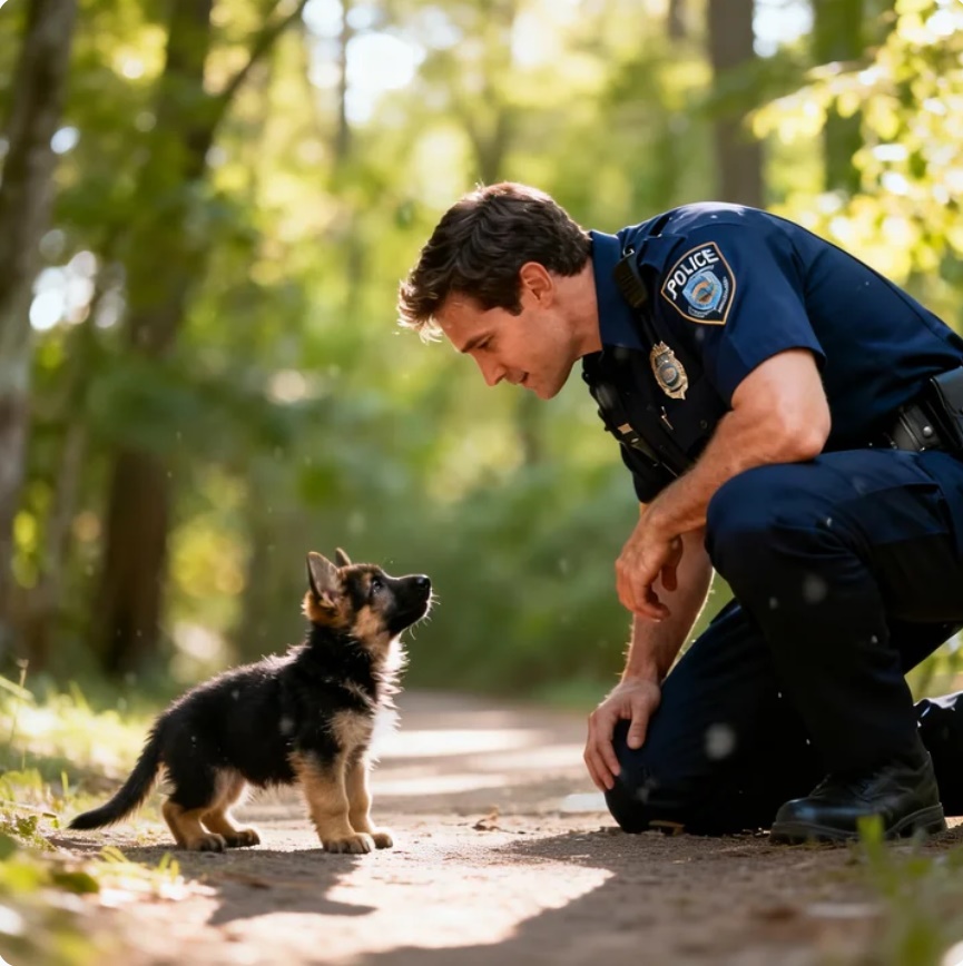 pequeño cachorro de pastor alemán que lo seguía a todas partes. Cada vez que daba un paso, el cachorro lo seguía cada vez