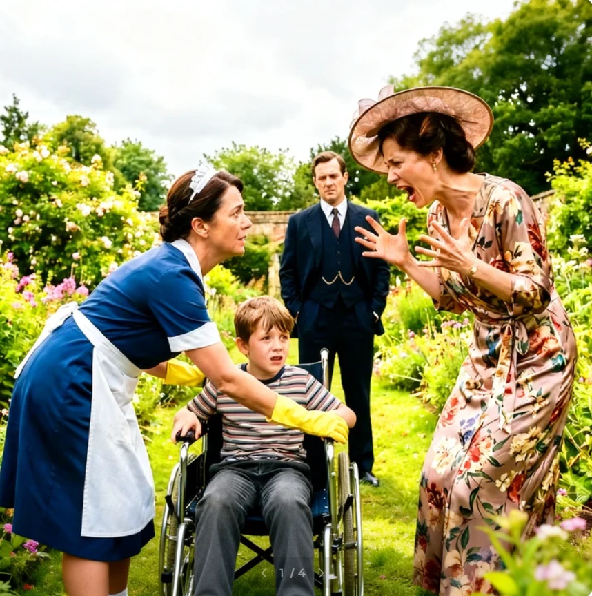 Su mano, perfectamente manicurada, se cerró como una garra de hierro alrededor del antebrazo de Carmen. Las uñas se clavaron en la piel, buscando hacer daño, buscando sangre. Carmen, con su uniforme azul impecable y los guantes de goma amarilla aún puestos, trastavilló hacia atrás, pero sus pies se plantaron en la tierra con una firmeza que nacía del puro instinto de supervivencia. No la suya, sino la del niño. Carmen no soltó la silla de ruedas. Sus dedos enguantados se aferraban al metal negro del reposabrazos con tal fuerza que los nudillos se le pusieron blancos bajo el látex.