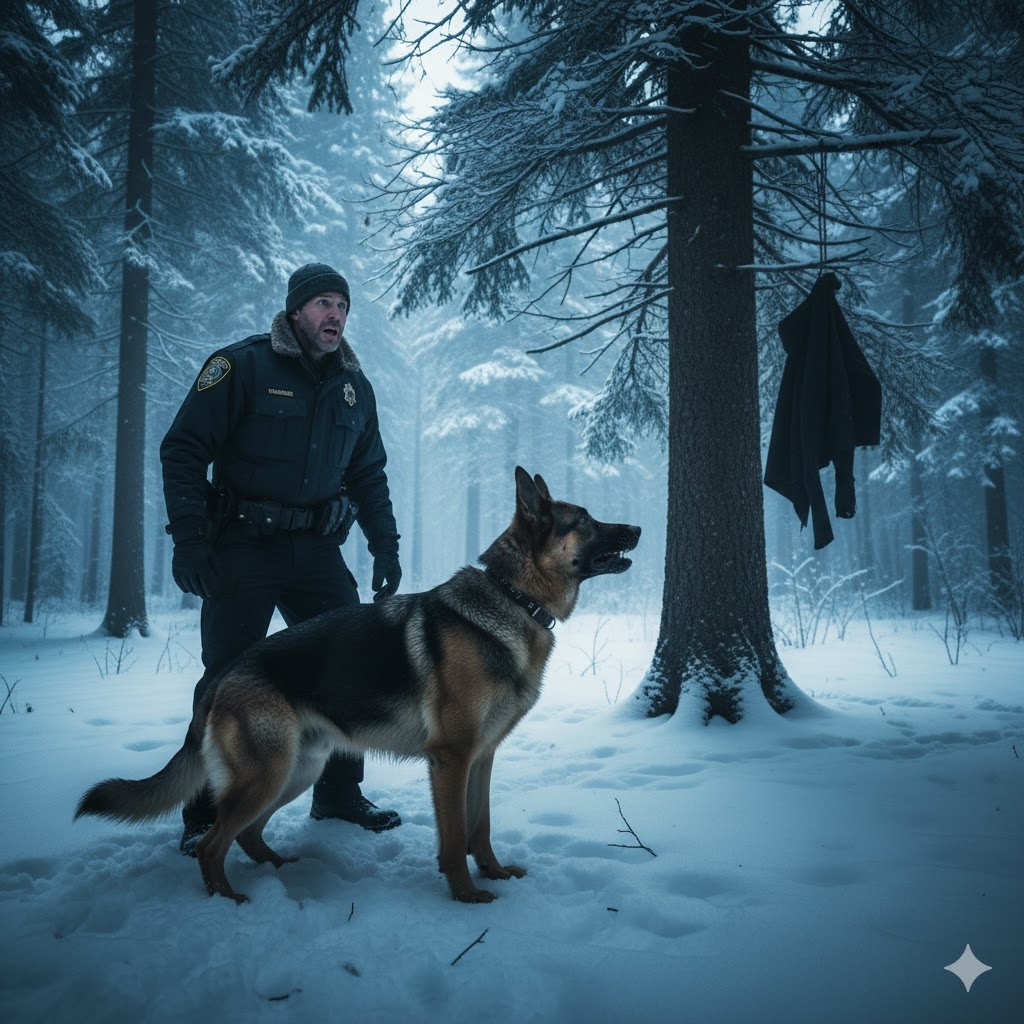 El aire de la mañana cortaba como cuchillas cuando el oficial Collins avanzaba con dificultad por el bosque cubierto de nieve. Cada paso crujía bajo sus botas, rompiendo un silencio que se sentía antinatural. A su lado caminaba Rex, su fiel compañero de cuatro patas, atento, concentrado, con el hocico bajo y los sentidos alerta.
