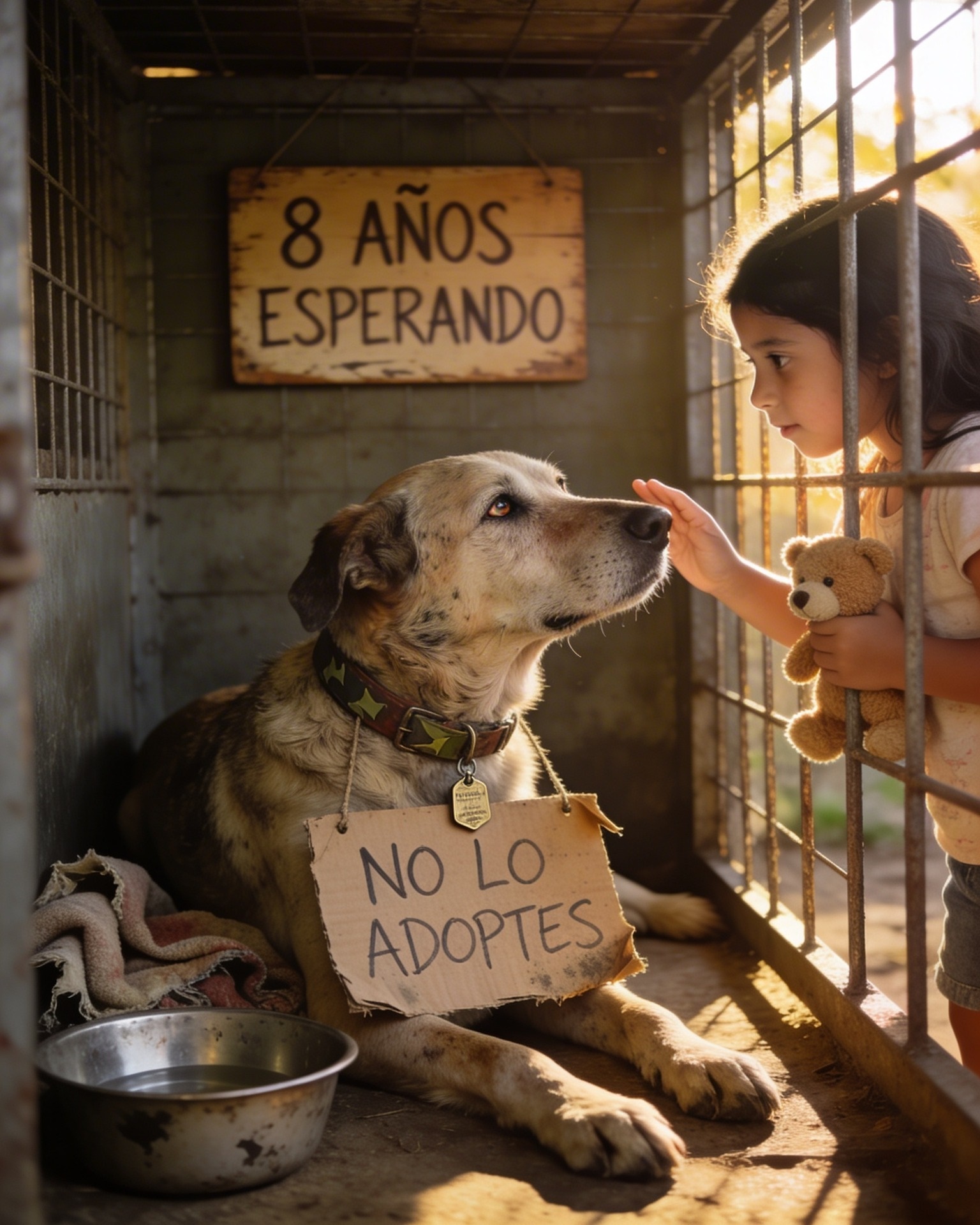 UN PERRO VIEJO, CON LOS OJOS CANSADOS Y UN LETRERO EN SU JAULA QUE DECÍA “NO LO ADOPTES”… PERO NADIE SABÍA LA VERDADERA RAZÓN POR LA QUE HABÍA PASADO OCHO AÑOS ESPERANDO. TODO CAMBIÓ EL DÍA EN QUE UNA NIÑA DECIDIÓ IGNORAR ESA ADVERTENCIA.