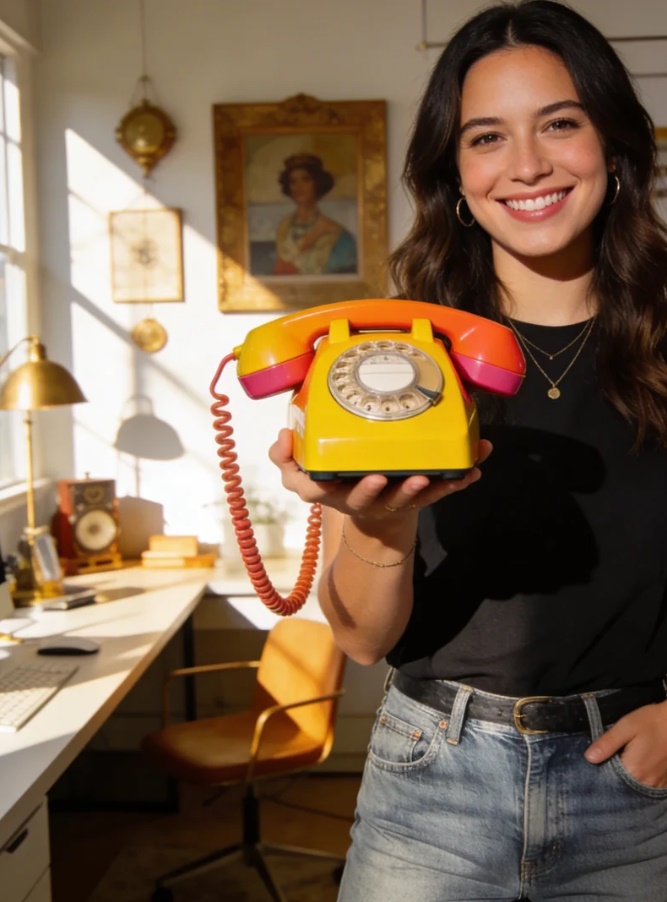The device is described as: “Vintage design. Modern tech.” And the company invites its users to, “Set your phone down and pick up something that sparks joy. Talk, laugh, twirl the cord… all the warmth of yesterday, reimagined for the modern world.”