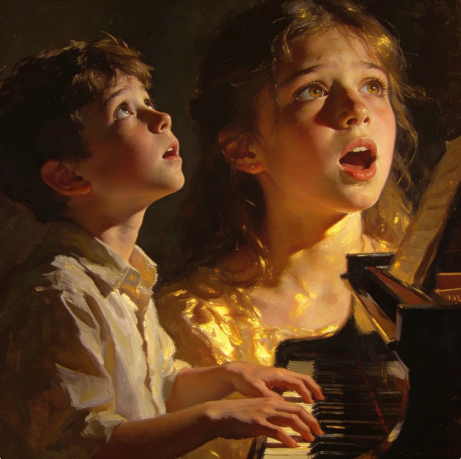 Please, sir, if we sing and play the piano for you, will you give us some food? Even just leftover bread. That’s what 10-year-old Catherine asked on stage at the Williams Theater right before the city’s most famous orchestra was about to perform. Her words made everyone in the fancy theater laugh at her and her twin sister. But when they let the girls get close to the piano just to make fun of them even more, the twins started playing and singing, and everyone went completely silent, shocked by what these two homeless children could do. Hello friends, welcome to our story. Before we start, please like this video and subscribe. Also, please let us know in the comments. Where are you watching from? New York, London, maybe South Africa or Jamaica? We want to know. The rain was cruel that night and everything around seemed to drown in darkness and cold. But despite that, Catherine gathered every tiny bit of courage she had left and whispered to her twin sister with a shaky, rough voice that sounded like it was barely holding on to life. Every word she spoke came out with pain, like it was using up the last drops of strength she had in her small freezing body. “Christine, we have to try. We have to go in there,” Catherine said, her breath coming out in little clouds that disappeared into the freezing air. The cold was so mean and sharp that it made the two twin sisters look like tiny ghosts about to fade away completely. Raindrops fell from the dark sky and stuck to the girls tangled, dirty hair, running down their thin faces and dripping off their chins. Their soaked clothes clung to their bodies, making them look even smaller and more helpless than they already were. Christine was shaking so violently it seemed like her whole body might just break into pieces. Her lips had turned a scary shade of blue purple. “Catherine, I can’t I can’t feel my hands anymore. Everything hurts so much.” She sobbed, wrapping her arms around herself, her voice so weak it was almost swallowed by the sound of rain hitting the ground. “I’m so hungry it feels like something is eating me from the inside.” Catherine, the older twin by only 10 minutes, but feeling like she had to be as brave as someone much, much older, squeezed her sister’s frozen hand as tight as she could, she tried to send warmth through that touch, tried to push courage, and hope from her heart into Christine’s. But the truth was, she barely had any warmth, courage, or hope left herself. “Please, Christine, stay with me, okay? Don’t close your eyes. We’re going to make it through this night.” I promise,” Catherine said, forcing her voice to sound strong. Even though inside she felt like crying and giving up, the wind howled around them like it was laughing at their misery, pushing them back, trying to knock them down. But the girls held on to each other and kept standing. There they were, two skinny little girls, fragile as glass, abandoned by the world, ignored by everyone who passed by. Their clothes were torn and dirty, their shoes had holes in them, and their stomachs growled loudly with hunger that felt like fire. And yet these two small children stood across the street from the enormous glowing Williams theater like they actually believed they had a right to hope. Like they believed that somehow somewhere inside that beautiful building full of rich people and warm lights, there might be just one person with a kind heart. The theater looked like a palace made of gold. Every window blazed with bright, cheerful light. Warm air seemed to pour out of it, making the rain around it look softer somehow. Through the tall glass doors, Catherine could see people dressed in clothes more expensive than anything she’d ever touched. Women in sparkling dresses and men in perfect black suits. All of them laughing and talking without a care in the world. Beautiful music floated out into the cold night. Piano music, soft and sweet, like a lullaby from a dream. Christine heard it too, and for just a second her shaking slowed down. That music, it sounds like like when mama used to sing to us. Catherine felt her throat get tight. She remembered their mother’s voice, remembered how safe she felt wrapped in her mother’s arms, remembered the songs that made everything feel okay, even when the world was falling apart. But their mother was gone now, had been gone for five long years. And the girls had been alone ever since, fighting every single day just to survive one more night. “Mama taught us to sing, too,” Catherine whispered more to herself than to Christine. She said we had special voices. She said we could make people feel things with our music. Christine looked up at her sister with eyes that were red from crying and exhaustion. Do you really think they’ll listen to us in there? Do you think they’ll give us food? Catherine looked at the theater again at all those wealthy people who had never known what it felt like to be this hungry, this cold, this desperate, and alone. She didn’t know the answer. She didn’t know if anyone inside that beautiful building would even see them as real children, or if they would just see dirty homeless kids who didn’t belong. But she knew one thing for certain. If they didn’t try, they might not survive. of the night. “I don’t know if they’ll listen,” Catherine admitted, her voice barely a whisper. “But we have to try. We have nothing left to lose.” Christine nodded slowly, too tired and weak to argue. She trusted her sister. She always had. Even when Catherine’s plans didn’t work out, even when they got chased away or yelled at or treated like trash, Christine knew that Catherine was trying her best to keep them both alive. The two girls stood there for another moment, gathering what little strength they had left. The rain kept falling. The cold kept biting. The hunger kept burning. Across the street, a shiny black car pulled up to the theater entrance. 