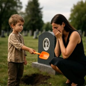 TU HIJA NO ESTÁ ENTERRADA AQUÍ… DIJO EL NIÑO POBRE A LA MILLONARIA LLORANDO Su hija no está enterrada aquí”, dijo el niño…