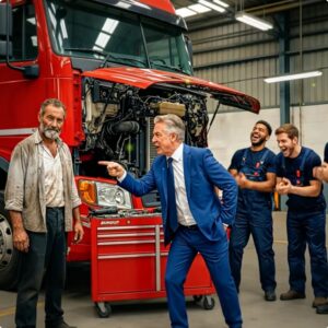 ¡SI ARREGLAS EL CAMIÓN QUE NADIE MÁS PUEDE,TE PAGARÉ EL DOBLE Y EL MENDIGO SILENCIASTE AL MILLONARIO Un tráiler valuado en 12 millones…