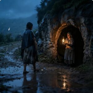 Una joven embarazada fue refugiada en una gruta por una anciana, y así comenzó una venganza familiar La lluvia caía como castigo sobre…