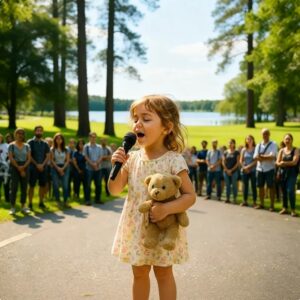 Ella pidió que sostuvieran su osito… Cuando la niñita empezó a cantar, ¡TODOS lloraron! La niña pobre entregó su osito remendado y dijo,…
