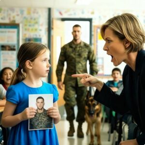 Maestra se burla de niña Tu papá es solo un marine, no es importante — Se congela cuando entra con En el pequeño…