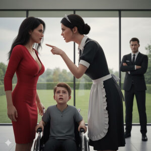 The seven-year-old boy in a wheelchair tried to stifle his tears as his stepmother mercilessly humiliated him. But before she could say anything…