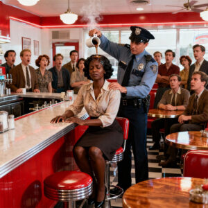 Un policía racista le vierte café a una mujer negra de mediana edad y se arrodilla al descubrir quién es… El restaurante estaba…